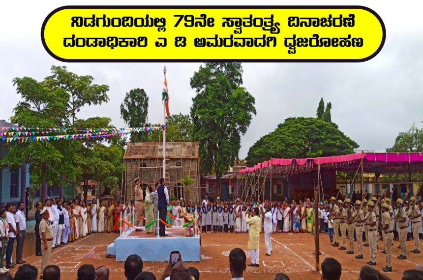 ನಿಡಗುಂದಿ, ಪಟ್ಟಣದ ಸರಕಾರಿ ಕನ್ನಡ ಗಂಡು ಮಕ್ಕಳ ಶಾಲೆಯ ಆವರಣದಲ್ಲಿ 79ನೇ ಸ್ವಾತಂತ್ರ್ಯ ದಿನಾಚರಣೆ ಧ್ವಜಾರೋಹಣ ತಾಲ್ಲೂಕಾ ದಂಡಾಧಿಕಾರಿ ಎ ಡಿ ಅಮರವಾದಗಿ ಧ್ವಜರೋಹಣ ನೆರವೇರಿಸಿದರು.ಹಲವಾರು ಜನರ ತ್ಯಾಗ,ಬಲಿದಾನದ ಫಲವಾಗಿ ನಮಗೆಲ್ಲ ಸ್ವಾತಂತ್ರ್ಯ ದೊರಕಿದೆ. ಆ ಮಹನೀಯರನ್ನು ಸ್ಮರಿಸುವ ಕಾರ್ಯದ ಜತೆಗೆ ದೇಶದ ಅಭಿವೃದ್ದಿಗೆ ಪ್ರತಿಯೊಬ್ಬರು ಶ್ರಮಿಸಬೇಕು ಎಂದು ತಹಸೀಲ್ದಾರ ಎ.ಡಿ ಅಮರವಾದಗಿ ಹೇಳಿದರು. ಪಟ್ಟದಣ ಎಂಪಿಎಸ್ ಶಾಲೆ ಆವರಣದಲ್ಲಿ ತಾಲೂಕು ಆಡಳಿತ ಹಾಗೂ ಪ.ಪಂ ಆಶ್ರಯದಲ್ಲಿ ಹಮ್ಮಿಕೊಂಡ 79ನೇ ಸ್ವಾತಂತ್ರ್ಯ ದಿನಾಚರಣೆ ಕಾರ್ಯಕ್ರಮದಲ್ಲಿ ಧ್ವಜಾರೋಹಣ ನೇರವೇರಿಸಿ ಅವರು ಮಾತನಾಡಿದರು. ತಾಲೂಕ್ ಪಂಚಾಯಿತಿ ಅಧಿಕಾರಿ ವೆಂಕಟೇಶ್ ವಂದಾಲ. ಪ.ಪಂ ಅಧ್ಯಕ್ಷ ಜಂಬಕ್ಕ ವಿಭೂತಿ.ಮತ್ತು ಸದಸ್ಯರು, ಪ.ಪಂ ಮುಖ್ಯಾಧಿಕಾರಿ, ಪೋಲಿಸ್ ಇಲಾಖೆ ಅಧಿಕಾರಿಗಳು ಸೇರಿದಂತೆ ಪಟ್ಟಣದ ಹಲವಾರು ಗಣ್ಯರು ಇದ್ದರು. ಪಟ್ಟಣ ಹಲವಾರು ಶಾಲೆಯ ವಿದ್ಯಾರ್ಥಿಗಳು ದೇಶಭಕ್ತಿ ಗೀತೆಗೆ ಹೆಜ್ಜೆ ಹಾಕಿದರು. ಹಲವಾರು ಸಾಧಕ ವಿದ್ಯಾರ್ಥಿಗಳಿಗೆ ಗಣ್ಯರು ಪ್ರಶಸ್ತಿ ನೀಡಿ ಸನ್ಮಾನಿಸಿದರು.