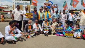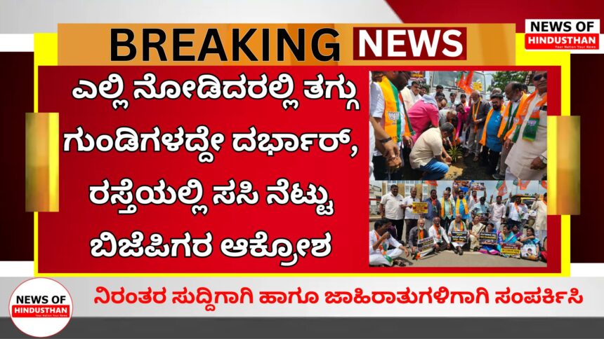 ವಿಜಯಪುರ ನಗರದಲ್ಲಿ ರಸ್ತೆ ಸಂಪೂರ್ಣ ಅವ್ಯವಸ್ಥೆಯಿಂದ ಕೂಡಿದ್ದು, ರಾಜ್ಯ ಸರ್ಕಾರ ರಸ್ತೆ ಅಭಿವೃದ್ಧಿ ವಿಷಯದಲ್ಲಿ ಬೇಜವಾಬ್ದಾರಿತನ ಪ್ರದರ್ಶಿಸುತ್ತಿರುವುದನ್ನು ಖಂಡಿಸಿ ಬಿಜೆಪಿ ಕಾರ್ಯಕರ್ತರು ಅಥಣಿ ರಸ್ತೆಯನ್ನ ತಡೆ ಮಾಡಿ ಗುಂಡಿಗಳಲ್ಲಿ ಸಸಿಗಳನ್ನು ನೆಡುವ ಮೂಲಕ ವಿಭಿನ್ನ ರೀತಿಯಲ್ಲಿ ಪ್ರತಿಭಟನೆ ನಡೆಸಿದರು. ಪ್ರವಾಸಿ ಮಂದಿರದ ಮುಂಭಾಗದಲ್ಲಿ ಅಥಣಿ ರಸ್ತೆಗೆ ಜಮಾಯಿಸಿದ ಬಿಜೆಪಿ ಕಾರ್ಯಕರ್ತರು ರಸ್ತೆ ತಡೆ ನಡೆಸಿ ರಸ್ತೆಯಲ್ಲಿರುವ ಗುಂಡಿಗಳನ್ನು ಮುಚ್ಚುವಂತೆ ಆಗ್ರಹಿಸಿದರು. ಕಾಂಗ್ರೆಸ್ ಸರ್ಕಾರ – ಜೀವಕ್ಕೆ ಸಂಚಾರ, ಗುಂಡಿ ಮುಚ್ಚದೇ ರಾಜ್ಯದ ಜನತೆ ಹಾಳು ಮಾಡಿದ ಸರ್ಕಾರಕ್ಕೆ ಧಿಕ್ಕಾರ, ಗುಂಡಿಗಳ ಜನಕ ಡಿ.ಕೆ. ಶಿವಕುಮಾರ ಎಂಬ ಪ್ಲೇಕಾರ್ಡ್ಗಳನ್ನು ಪ್ರದರ್ಶಿಸಿ ರಾಜ್ಯ ಸರ್ಕಾರದ ವಿರುದ್ಧ ಆಕ್ರೋಶ ಹೊರಹಾಕಿದರು.