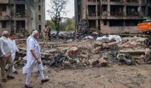 ಪ್ರಧಾನಿ ನರೇಂದ್ರ ಮೋದಿ ಶುಕ್ರವಾರ ಅಹಮದಾಬಾದ್ನಲ್ಲಿ ಏರ್ ಇಂಡಿಯಾ ವಿಮಾನ AI 171 ಅಪಘಾತಕ್ಕೀಡಾದ ಸ್ಥಳಕ್ಕೆ ಭೇಟಿ ನೀಡಿ ಪರಿಸ್ಥಿತಿಯನ್ನು ಖುದ್ದಾಗಿ ನಿರ್ಣಯಿಸಿದರು. ದುರಂತದ ನಂತರ ಕಾರ್ಯನಿರ್ವಹಿಸುತ್ತಿರುವ ಅಧಿಕಾರಿಗಳು ಮತ್ತು ತುರ್ತು ಪ್ರತಿಕ್ರಿಯೆ ತಂಡಗಳೊಂದಿಗೆ ಅವರು ಸಭೆ ನಡೆಸಿದರು.