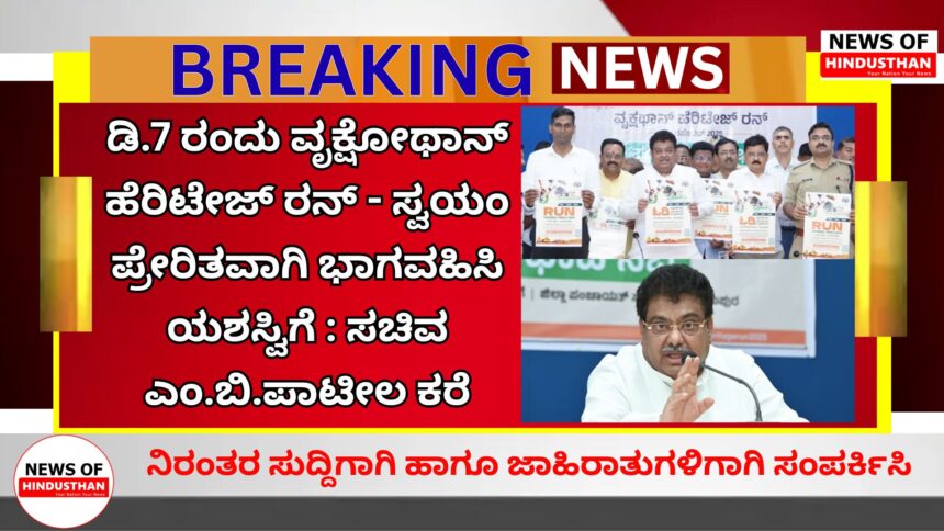 ಐತಿಹಾಸಿಕ ಸ್ಮಾರಕಗಳ ರಕ್ಷಣೆ, ಹಸರೀಕರಣಕ್ಕಾಗಿ, ಸ್ವಚ್ಛತೆಗಾಗಿ 2025ನೇ ಸಾಲಿನ ಡಿಸೆಂಬರ್ 7 ರಂದು ಜಿಲ್ಲೆಯಲ್ಲಿ ಹಮ್ಮಿಕೊಂಡಿರುವ ವೃಕ್ಷೋಥಾನ್ ಹೆರಿಟೇಜ್ ರನ್ನಲ್ಲಿ ಜಿಲ್ಲಾಡಳಿತ, ಸ್ವಯಂ ಸೇವಾ ಸಂಘ-ಸಂಸ್ಥೆಗಳು, ಸಾರ್ವಜನಿಕರು ಸ್ವಯಂ ಪ್ರೇರಿತವಾಗಿ ಸಕ್ರೀಯವಾಗಿ ಈ ಕಾರ್ಯಕ್ರಮದಲ್ಲಿ ಭಾಗವಹಿಸಿ ಯಶಸ್ವಿಗೊಳಿಸುವಂತೆ ಬೃಹತ್ ಮತ್ತು ಮಧ್ಯಮ ಕೈಗಾರಿಕೆ, ಮೂಲಸೌಲಭ್ಯ ಅಭಿವೃದ್ಧಿ ಖಾತೆ ಸಚಿವರಾದ ವಿಜಯಪುರ ಜಿಲ್ಲಾ ಉಸ್ತುವಾರಿ ಎಂ.ಬಿ.ಪಾಟೀಲ ಕರೆ ನೀಡಿದರು.