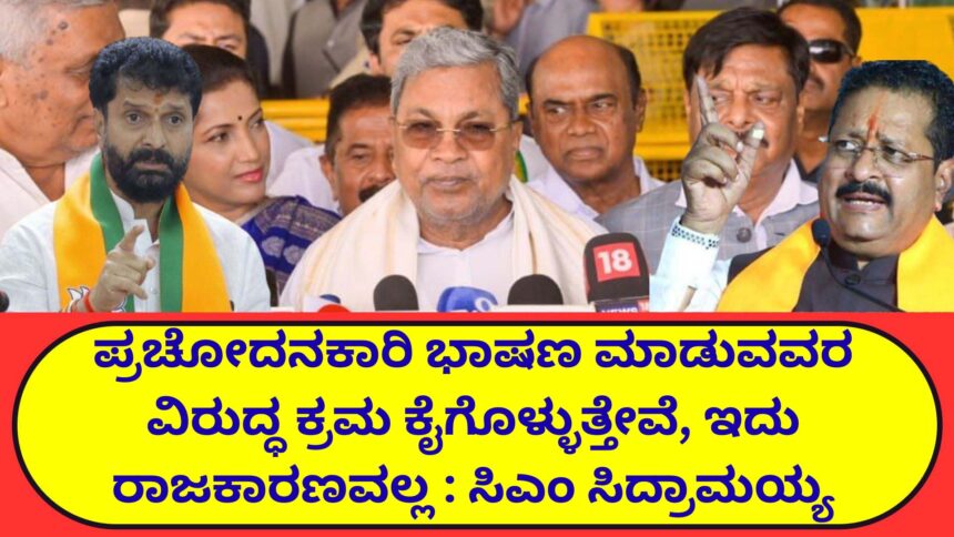 ಗಲಭೆ ಆರಂಭವಾಗಿ ಮೂರು ವರ್ಷಗಳ ನಂತರ ಪ್ರಧಾನಮಂತ್ರಿ ನರೇಂದ್ರ ಮೋದಿ ಮಣಿಪುರಕ್ಕೆ ಭೇಟಿ ನೀಡುತ್ತಿದ್ದಾರೆ. ಮಣಿಪುರದಲ್ಲಿ ಗಲಭೆ ನಡೆಯುವ ಸಂದರ್ಭದಲ್ಲಿ ಪ್ರಧಾನಿ ಭೇಟಿನೀಡಿ, ಜನರ ಕಷ್ಟ ಆಲಿಸಬೇಕಿತ್ತು. ಪರಿಸ್ಥಿತಿ ಸುಧಾರಿಸಿದ ಮೇಲೆ ಭೇಟಿ ನೀಡುತ್ತಿದ್ದಾರೆ. ವಿರೋಧಪಕ್ಷದವರ ಒತ್ತಡದಿಂದ ಈಗ ಮಣಿಪುರಕ್ಕೆ ಹೋಗಿದ್ದಾರೆ ಎಂದು ಮೈಸೂರಿನ ವಿಮಾನ ನಿಲ್ದಾಣದಲ್ಲಿ ಮಾಧ್ಯಮಗಳಿಗೆ ಮುಖ್ಯಮಂತ್ರಿ ಸಿದ್ರಾಮಯ್ಯ ಪ್ರತಿಕ್ರಿಯಿಸಿ. ಬಿಜೆಪಿ ನಾಯಕರಾದ ಸಿ.ಟಿ ರವಿ, ಬಸನಗೌಡ ಯತ್ನಾಳ್ ಹಿಂಸೆಗೆ ಪ್ರಚೋದನೆ ನೀಡುವ ಹೇಳಿಕೆ ನೀಡಿದ ಕಾರಣಕ್ಕಾಗಿ ಅವರ ಮೇಲೆ ಎಫ್ಐಆರ್ ದಾಖಲಾಗಿದೆ. ಬಿಜೆಪಿಯವರು ಪ್ರಚೋದನಾಕಾರಿಯಾದ ಭಾಷಣ ಮಾಡಿದರೆ ಸರ್ಕಾರ ಏನು ಮಾಡಬೇಕು? ಕೈಕಟ್ಟಿ ಕೂರಲು ಆಗುತ್ತದೆಯಾ? ಸಮಾಜದ ಶಾಂತಿ ನೆಮ್ಮದಿಯನ್ನು ಕಾಪಾಡುವುದು ಅತ್ಯಂತ ಅವಶ್ಯಕ. ಅದಕ್ಕಾಗಿ ಪ್ರಚೋದನಾಕಾರಿ ಭಾಷಣ ಮಾಡುವವರ ವಿರುದ್ಧ ಕ್ರಮ ಕೈಗೊಳ್ಳುತ್ತೇವೆ. ಇದು ರಾಜಕಾರಣವಲ್ಲ. ನಾವು ಯಾರನ್ನು ಟಾರ್ಗೆಟ್ ಮಾಡಿಲ್ಲ, ಮಾಡುವುದು ಇಲ್ಲ. ನಾನೂ ಕೂಡ ಒಬ್ಬ ಹಿಂದೂ. ನನ್ನ ಹೆಸರಿನಲ್ಲಿಯೇ ಈಶ್ವರ ಮತ್ತು ರಾಮ ಎರಡೂ ದೇವರ ಹೆಸರಿದೆ ಎಂದರು.